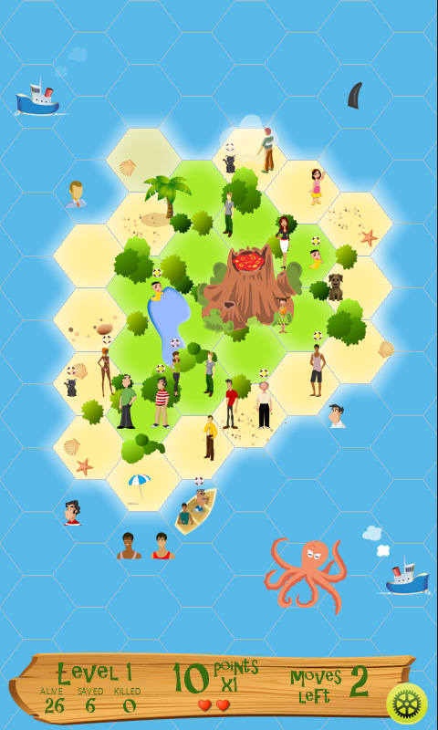 Once a quiet peaceful heaven, our island is now under the threat of its volcano. Your task is to move the inhabitants to safer places.