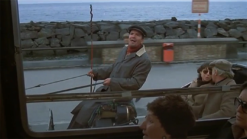 Bud Spencer talks to a horse cab driver with a heavy Neapolitan accent of Italian