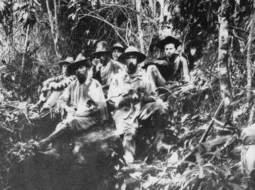 Fawcett and his team posing at the source of Rio Verde, exhausted by starvation